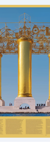 Standing upon colossal plinths, the Golden Columns rise from the water like a reengineered Parthenon.