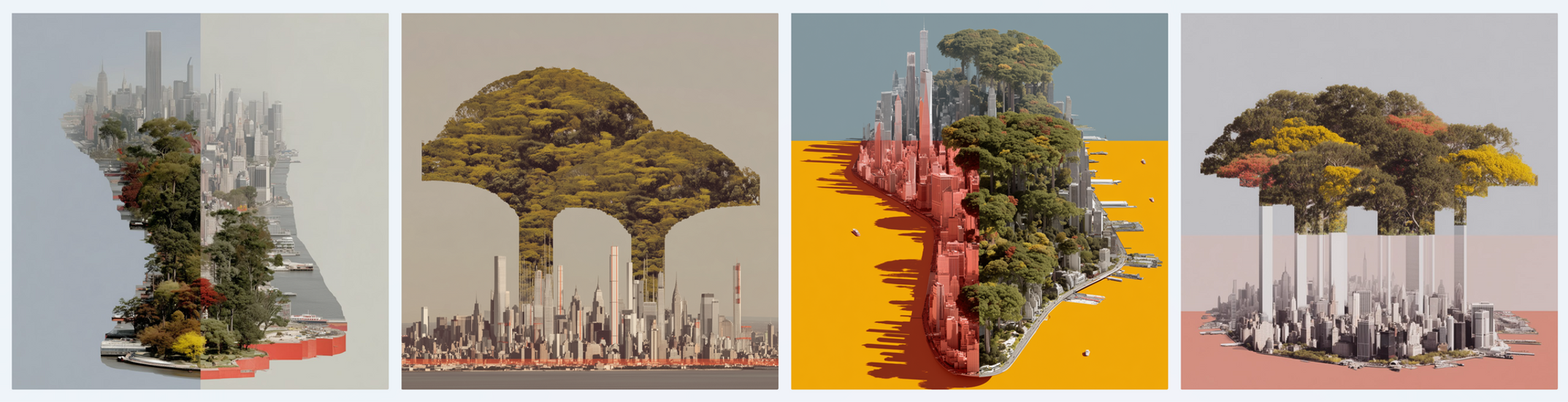 A split Manhattan becomes a biophilic city—trees on stilts lifting entire neighborhoods, Central Park becoming the lungs and spine of the city.🌳 Nature isn’t decoration. It’s urban strategy.